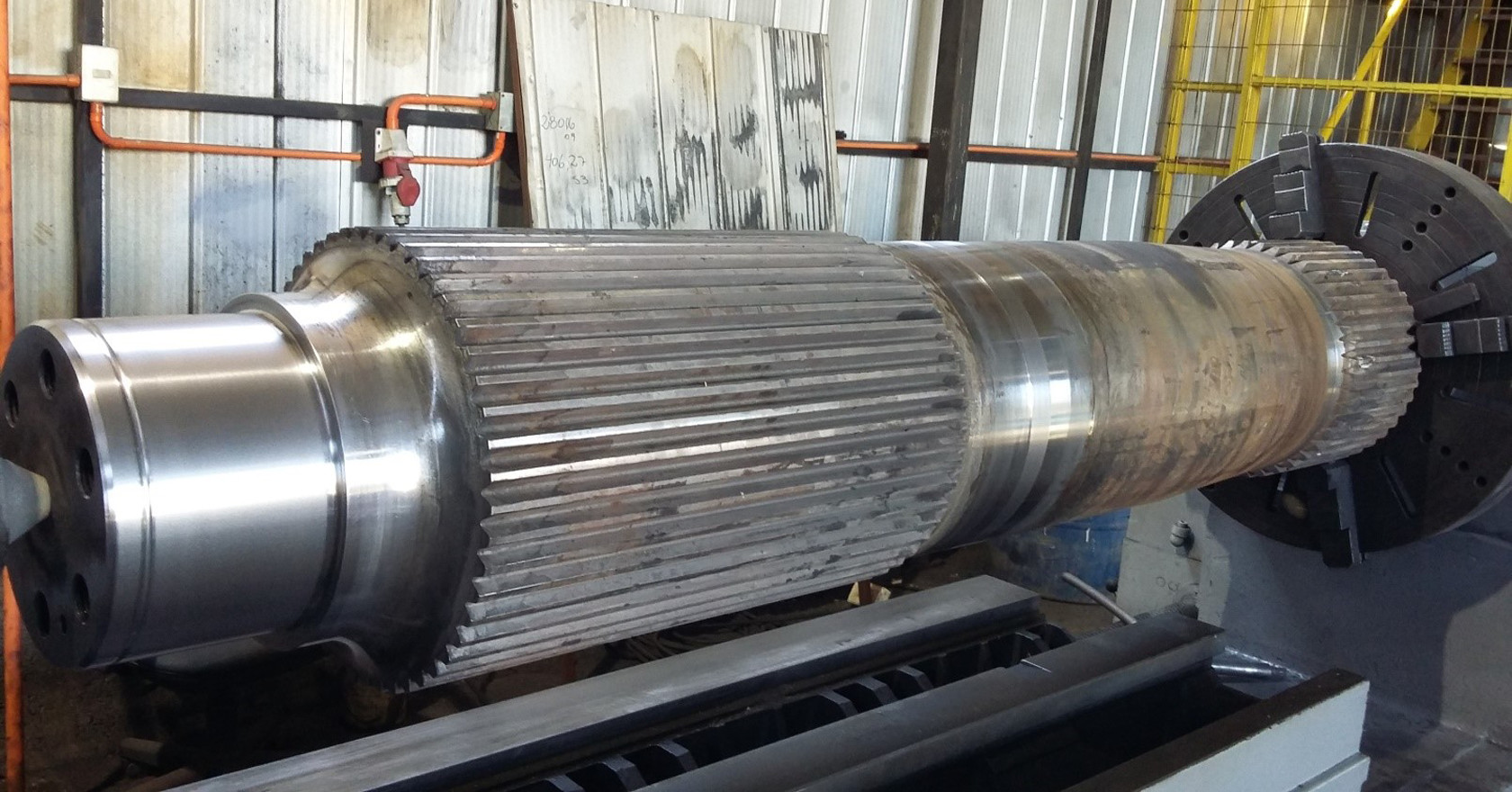 Reparación Eje Estriado con un proceso de metalizado y Arco Spray ocupando para ello, material Base 75B y de Aporte 60T